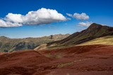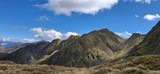 - Le sommet est visible, plus très loin, en remontant dans les pentes herbeuses. Au sommet, la vue s’étend sur 360 degrés, avec toutes sortes de couleurs de roches, des crêtes et pics effilés, des sommets plus arrondis. Nous regagnons le plateau herbeux pour pique-niquer.
