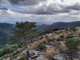 - Nous démarrons cette boucle, au Nord du village de Camplong d’Aude et traversons champs et vignes, en descente douce, jusqu’à la route qui longe les gorges du Congoust. Nous suivons cette route sur 1,5 km environ jusqu’au croisement avec le GR 36 ; là, la pente se redresse d’un coup, et nous commençons l’ascension de la très belle crête, orientée SO/NE. Le vent souffle en fortes rafales, et malgré la pente soutenue nous gardons doudounes, gants et bonnets !