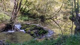 - Le chemin forestier qui suit, en balcon au-dessus du Sescoué, nous repose de nos efforts et nous régale de ses couleurs automnales.