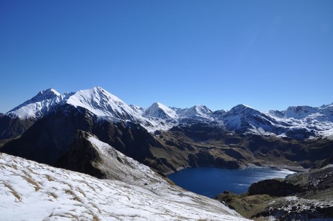 - Arrivée au col de Barielle (2238m) superbe vue sur le lac , le pic de midi de Bigorre et la chaine des Pyrénees. Nous continuons jusqu'au pic de Bizourtère (2311m) une centaine de mètres plus haut où nous nous installerons pour le pique-nique.