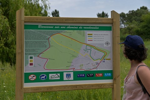Une signalétique spécifique a été posée par les services techniques de la ville, avec un panneau d'information près du lac de la Mouline et de nombreux poteaux porteurs d'indication de direction : les plaques et les flèches sont de couleur différentes selon la longueur des circuits (vertes pour le circuit long de 4,5km, jaune pour le circuit moyen de 7,5 km et rouge pour le grand circuit de 11km).